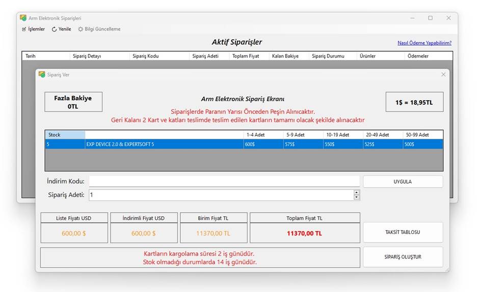 ARM ELEKTRONIK ONLINE SİPARİŞ UYGULAMASI
